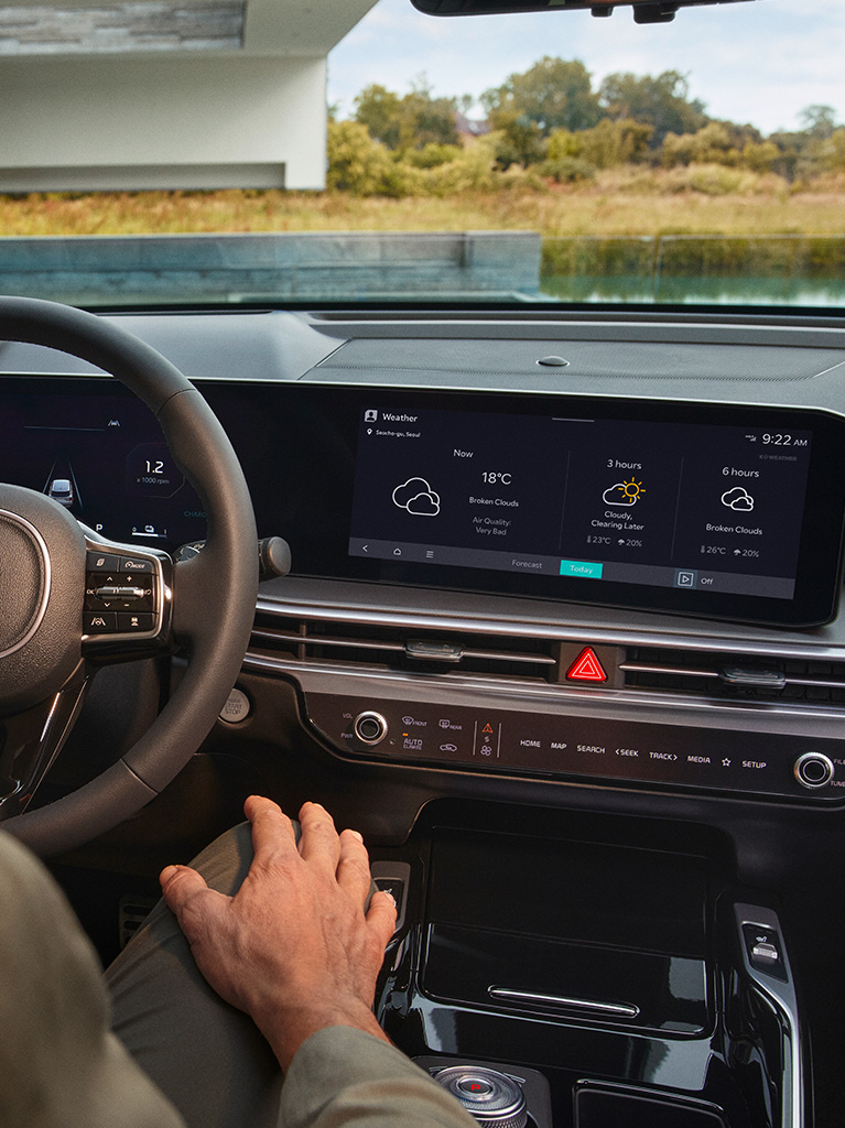 Verbinde dein Telefon über die Kia Connect App¹ nahtlos mit deinem Sorento und nutze zusätzliche Komfortfeatures, Sicherheitsfunktionen und Support-Dienste. Die On-Board-Services halten dich über Echtzeit-Verkehrsdaten, Ladestationen in der Nähe, Parkmöglichkeiten, das Wetter und viele andere nützliche Dinge auf dem Laufenden. Genauso praktisch sind die Off-Board-Services: Batteriekontrolle, Klimakontrolle und Last-Mile-Navigation, um nur einige der vielen Funktionen zu nennen.³ ⁴